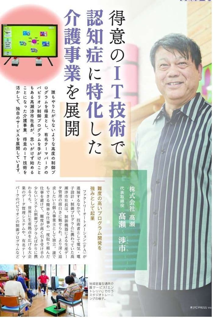 また、介護施設では神経トレーニングや認知症リハビリに、IT技術を応用したタッチパネル式トレーニング媒体装置及び情報ロボットや介護ロボット開発に取り組み認知予防課題改善を進めていきます。