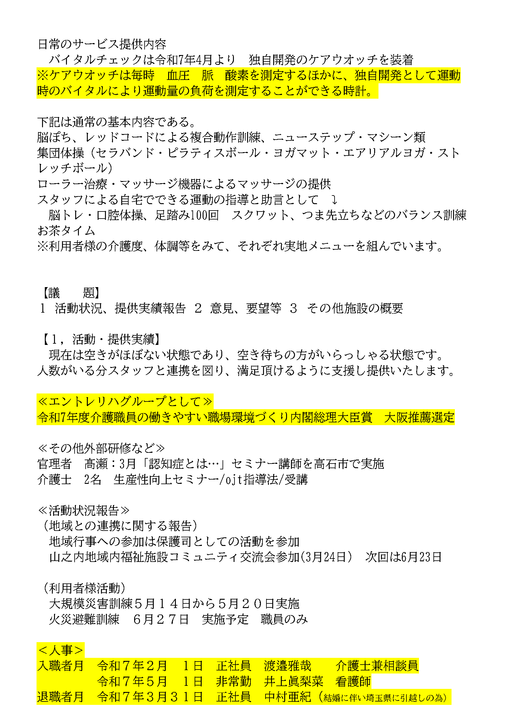 2025年6月13日金曜日 16時から運営推進会議を開催します。